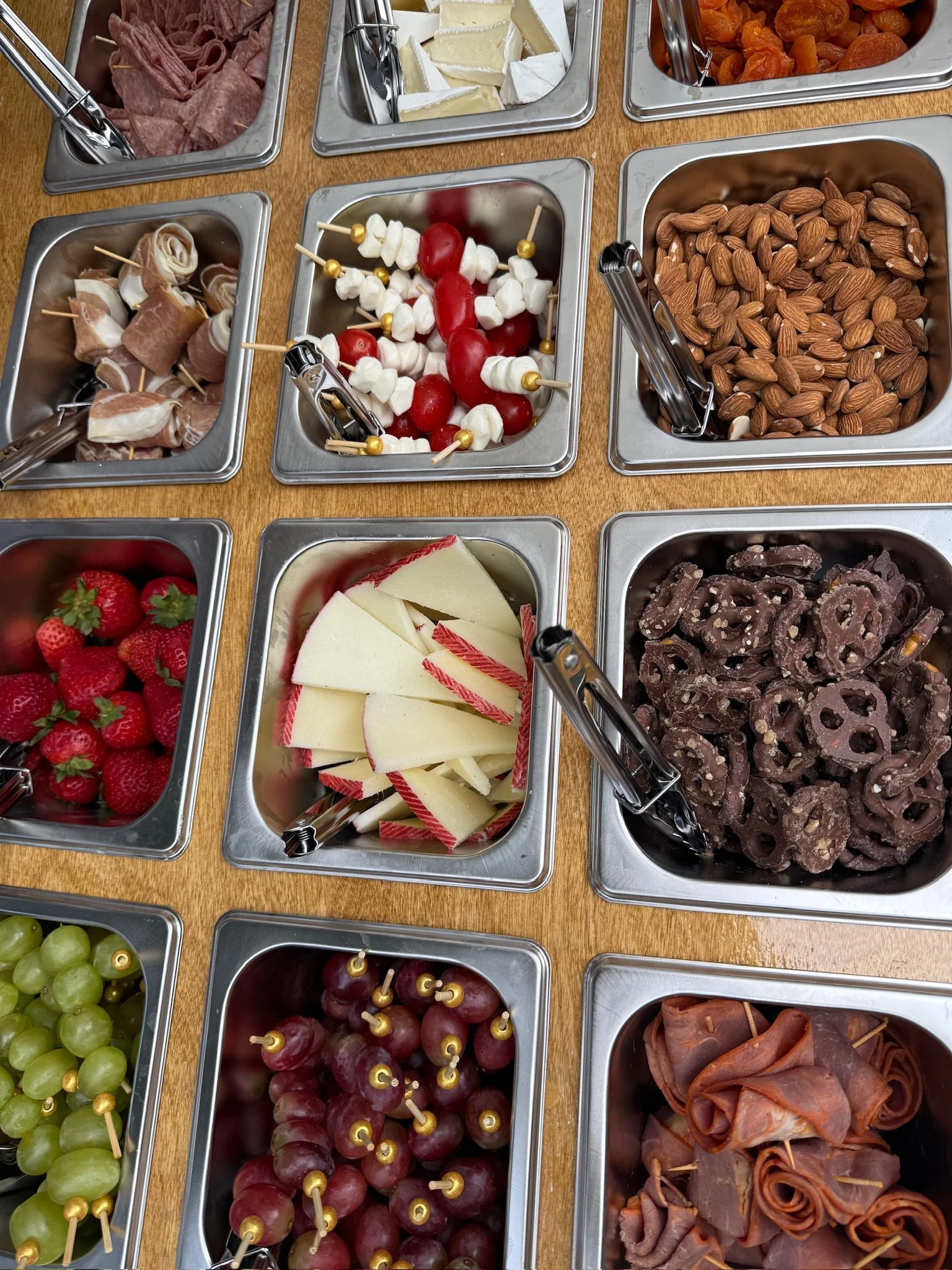 Our charcuterie cart features a curated selection of artisan cheeses, cured meats, fresh fruits, crackers, and accompaniments—beautifully displayed and designed for effortless grazing. Perfect for any event, it’s a show-stopping centerpiece that tastes as good as it looks.