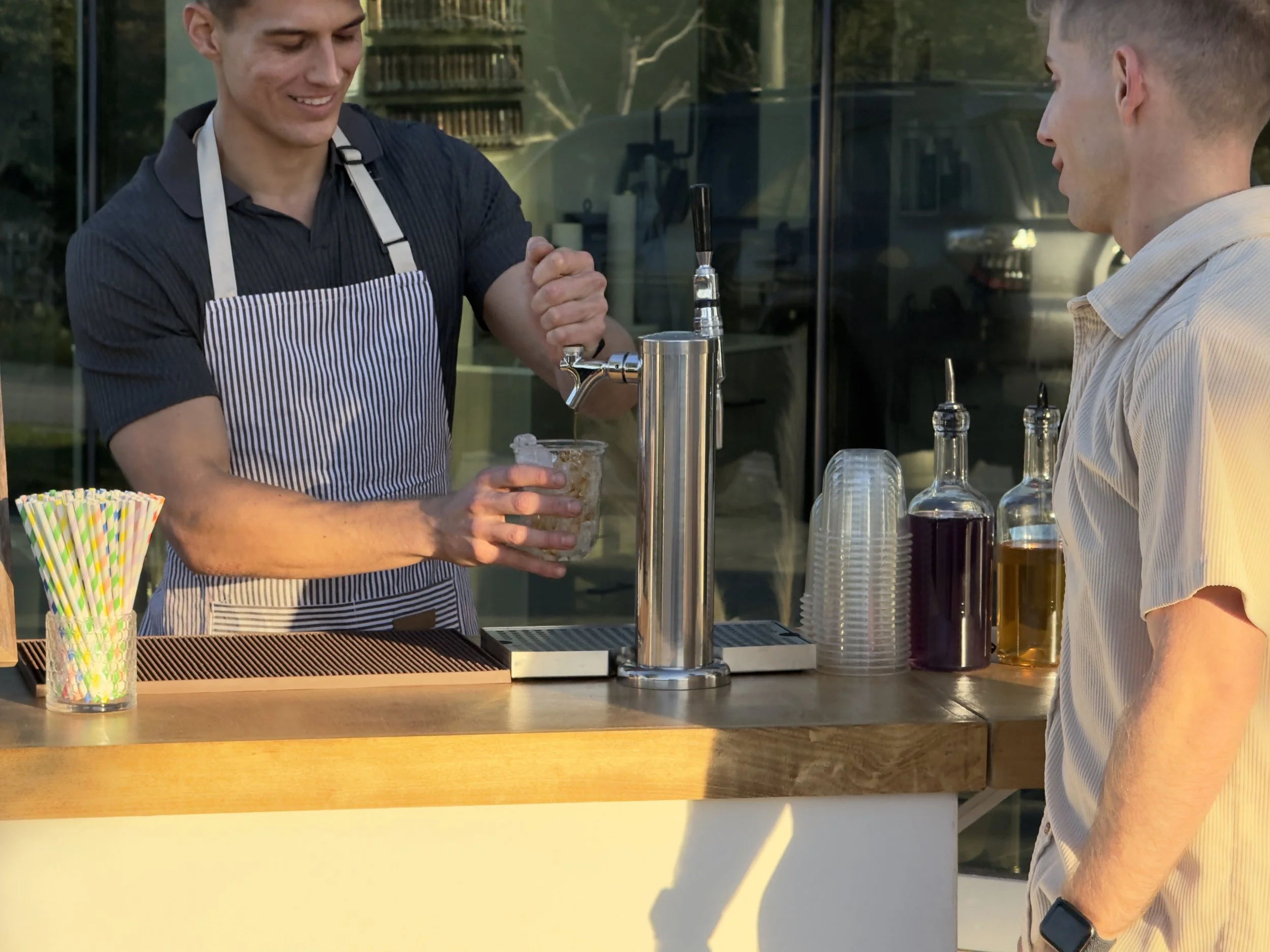 You provide the alcohol, and we take care of everything else — mixers, garnishes, and flawless presentation. With your cocktail served on tap, your guests enjoy quick, seamless pours that keep the celebration flowing.